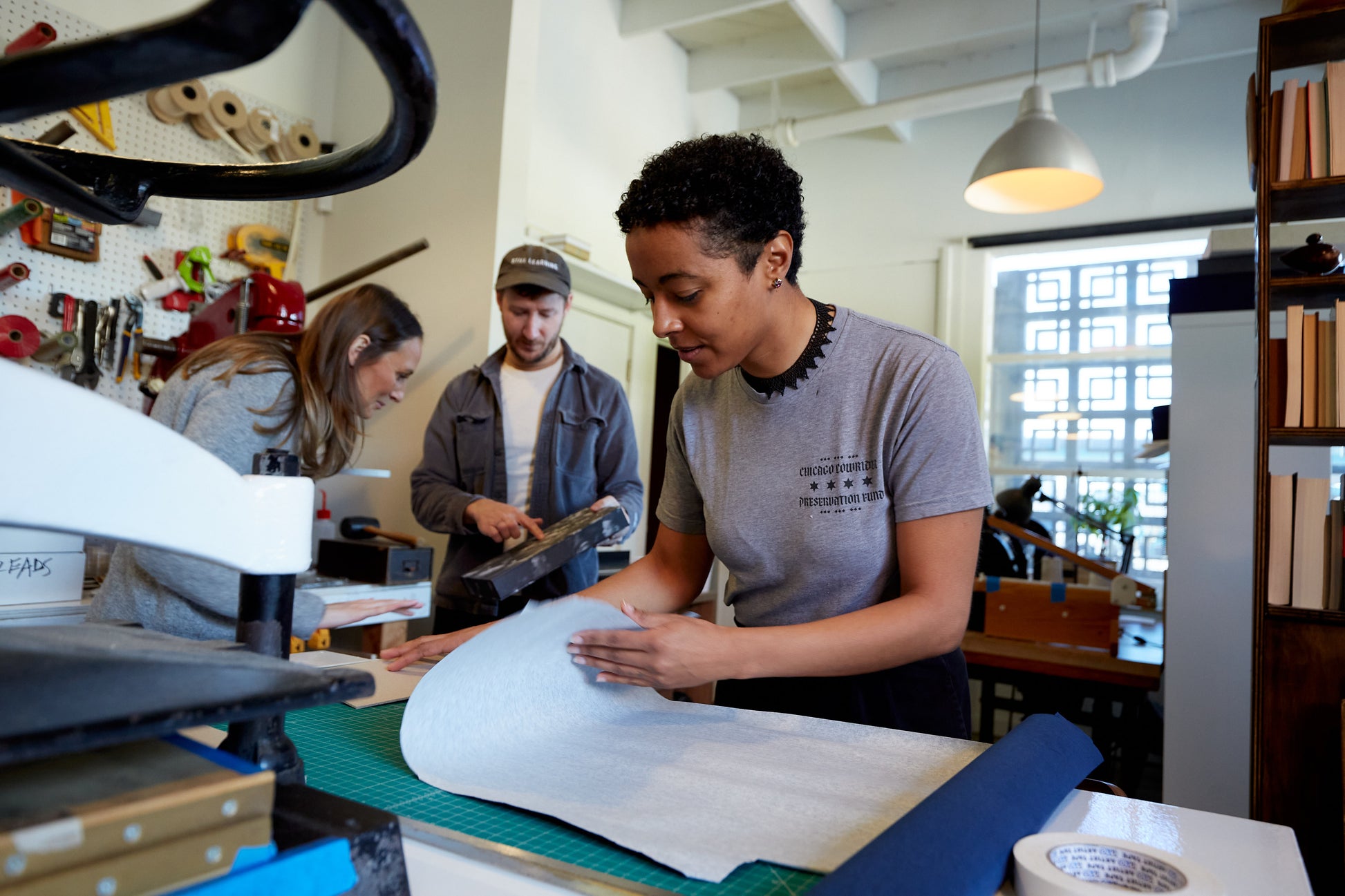 This one-day course will cover the basics of bookbinding and students will become familiar with the various processes by producing a blank hardcover notebook / sketchbook. We will cover the technical aspects of paper, board, fabric, printing methods, and sewing methods.